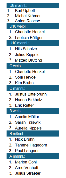 Mit der Besetzung Erik Retter, Hanno Birkholz und Peer Vonhoff hat die 1. C-Junioren-Mannschaft den 1. Platz in der Regionsklasse errungen.